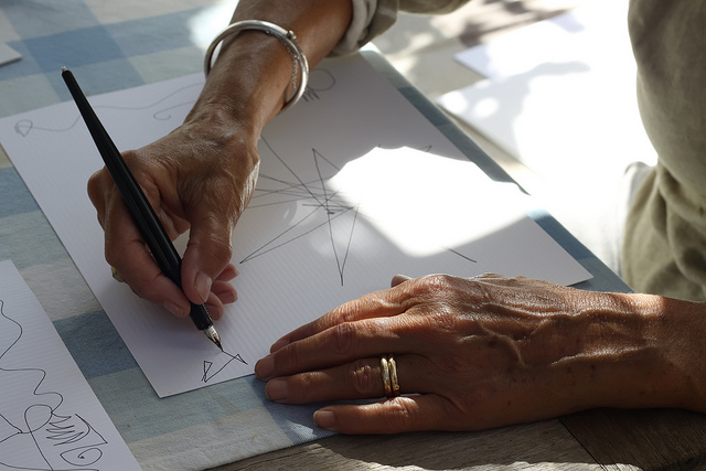 Sara came to breakfast with a few sheets of thick white paper and ink pen. Once we were done she announced that she would like to show us how she works. She pulled a piece of paper and started drawing without lifting her ink pen from the paper until she was done with the central figure: it was mesmerizing to watch the confident moves of her beautiful hands. She was not saying anything and yet she was talking. Watching her draw was like peeping into somebody else’s dream with a few complications, seemingly unrelated events, few magical beings and enchanting sights. My dad asked Sara if she does abstract portraits, and she kindly agreed to do one for each member of our family. The portraits stirred a good discussion and provoked much thinking in our family. Dad was busy writing about that in his dairy the whole 10 hour drive back to Istanbul.