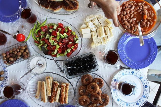 Our breakfast plates were the greenest I have ever seen. Mandatory local olives and cheeses, piece of the whole-wheat börek with herbs, and the greens piled up over the Aegean take on the Mediterranean çökelek salatası where çökelek was replaced with lor and red pepper flakes imparted a substantial kick. Aegeans are renown for foraging and cooking all sorts of wild greens found in the gardens, fields, hills and sea. The Turkish joke points to the great foraging enthusiasm of the Aegean folks: “Hey, brother: one Aegean and four cows have invaded your garden”. “What? Forget the cows, get that Aegean out!” Özgür told Candan Abla laughingly the night before, “If Olga had not married me she would have found a guy from Izmir: she loves all the greens”.