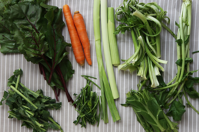I have been writing a lot about the winter greens that come with thick juicy stalks or root vegetables that are often sold here with the greens (and I’ve gotten pretty good at salvaging them from the greengrocers). Leafy greens don’t keep so well, and it’s hard to use them whole in a single dish. Here is your food waste potential. Or a room for a little project.