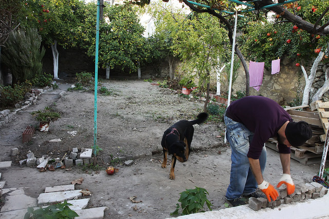 The Republic Day meant the entrance to the main square of Alaçatı was closed. And so was the alternative way blocked with a pile of sand in front of a construction site. I took the dogs out to pee. Sasha and Chorny pulled me sideways as they crawled and hungrily sniffed the grass on the lawn. It was there on the lawn when I understood we have moved to Alaçatı. All of a sudden the move became real as I observed our two dogs trying to make sense of the new surroundings. These guys trusted us enough to stand the day long road trip next to the dishwasher, the nausea and still restrained from peeing on the boxes and eating the other half of the plastic wrap covering our belongings.