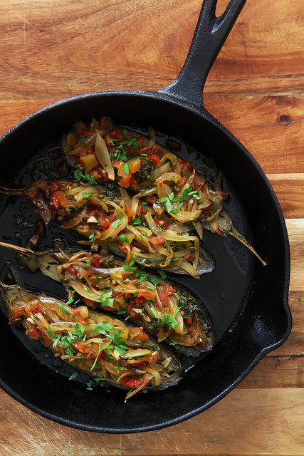 For months I was waiting to cook this dish again. As much as I love my winter roots or spring greens, I am passionate about the nightshades that come out in summer. Firm eggplants with shiny skins and ripe tomatoes bursting with sweetness. After all, the whole imam bayıldı business is about excellent summer produce.