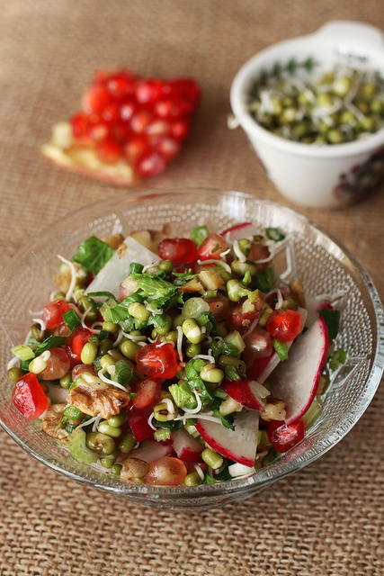 The base of the salad is the sprouted mung beans. I have gotten the idea from Ulli. We met at my breakfast club a month ago, and I wondered why our paths had not crossed before: both of us live in Moda and both are passionate about eating healthy. Ulli is a certified Ayurveda consultant and yoga therapist who teaches her clients to live and eat in sync with their bodies. She is such a fascinating person that I am planning to tell you more about her one day, but for now - to the sprouted mung beans. [click to continue…]