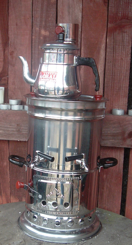 For your double teapot you should get either a small stainer (as big as the neck of the Turkish tea glass) to use as you pour the tea or a little metal strainer-box which you can use to place the tea-leaves inside the upper kettle so they don’t get on your way when serving the tea.