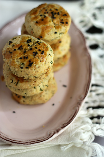 Salty and slightly sweet at the same time the rustic dill biscuits are herb-flavored and dotted with the tiny dashes of the chopped wispy leaves.
