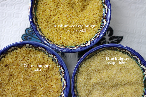 Now, inability to tell the difference between different kinds of bulgur — however subtle the difference is at times — equals a fiasco at the Turkish kitchen. I will never forget how my Turkish mother-in-law almost declared me as a culinary failure during one of my first feats in Turkish cooking when I failed to pick up the right kind of bulgur for my pilaf with chard and caramelized onions. Instead of bulgur I picked up the actual wheat berry which has to be soaked — preferably overnight — before cooking. I am still convinced that wheat berry pilaf has a right to exist but she had a point — you have to know your ingredients and bulgur for that matter given we are talking about the single most important grain in Turkish cooking.